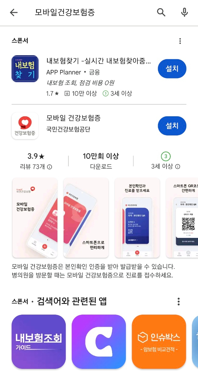 - 구글 플레이스토어에서 국민건강보험공단 모바일 건강보험증 설치